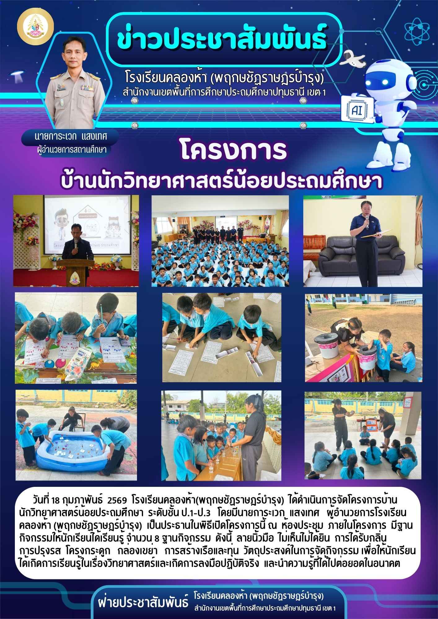 ประกาศโรงเรียนคลองห้า(พฤกษชัฏราษฎร์บำรุง) เรื่อง รับสมัครนักเรียนชั้นอนุบาล 2 และนักเรียนชั้นประถมศึกษาปีที่ 1 ประจำปีการศึกษา 2569 13 ม.ค. 69